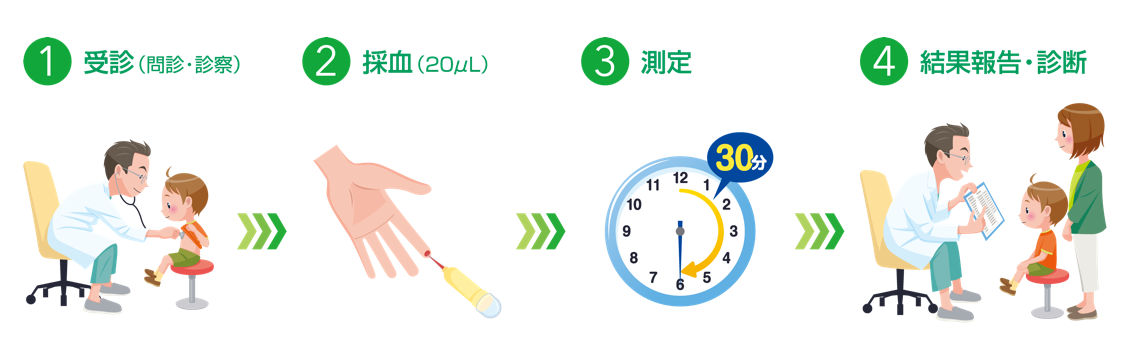 A1:ドロップスクリーン検査とは、指先から一滴の血液を採取して、食物や花粉などのアレルギーの原因物質(アレルゲン)に対する反応を調べる検査です。注射器を使わないので、痛みや不快感が少なく、小さなお子さまや注射が苦手な方にも受けやすい検査です。Q2:検査にかかる時間はどれくらいですか?